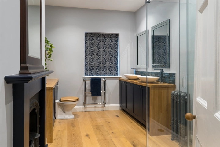 To design and build a colourful and elegant guest bathroom with bespoke built-in furniture. Blue was to be the key colour along with oak and the overall design must be in keeping with the period property and features.About The Project